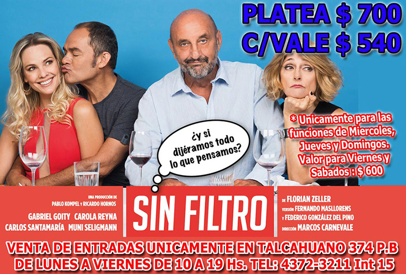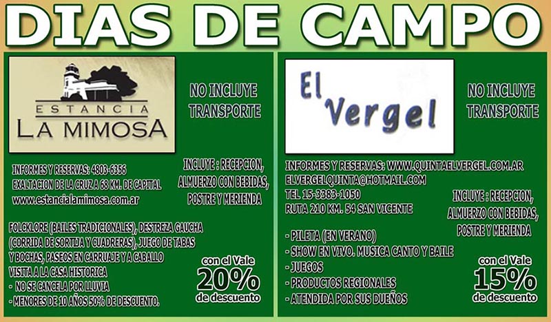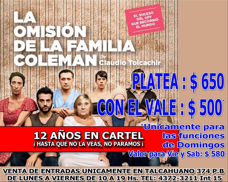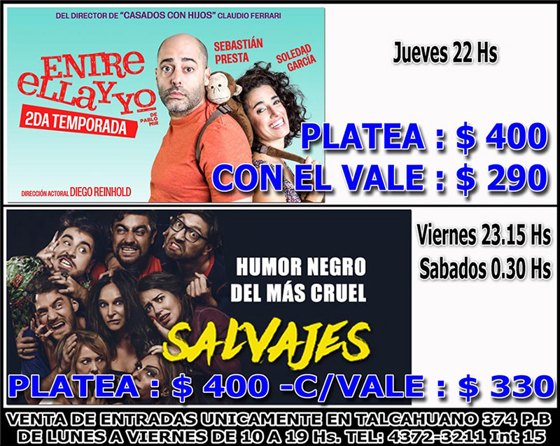 El VALE para obtener descuentos sirve UNICAMENTE para los ofrecimientos y espectáculos publicados en la cartelera.