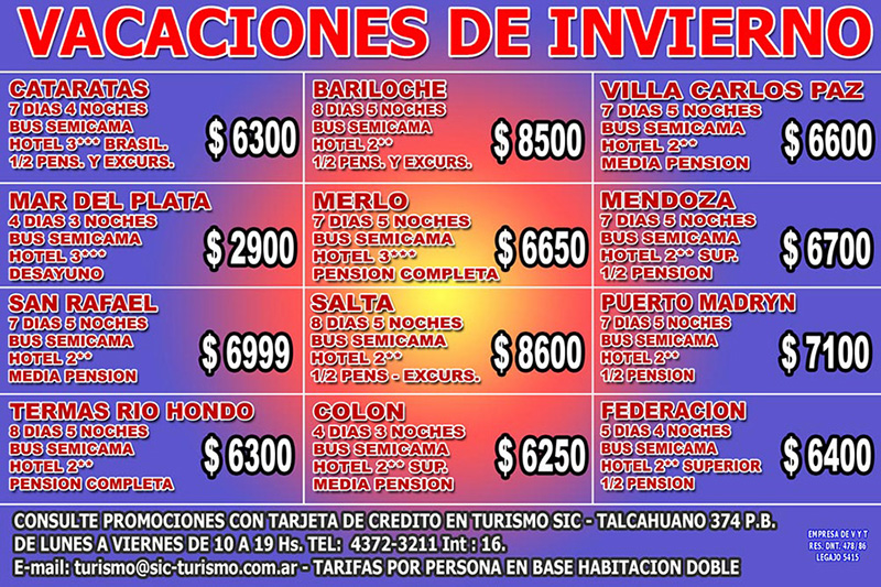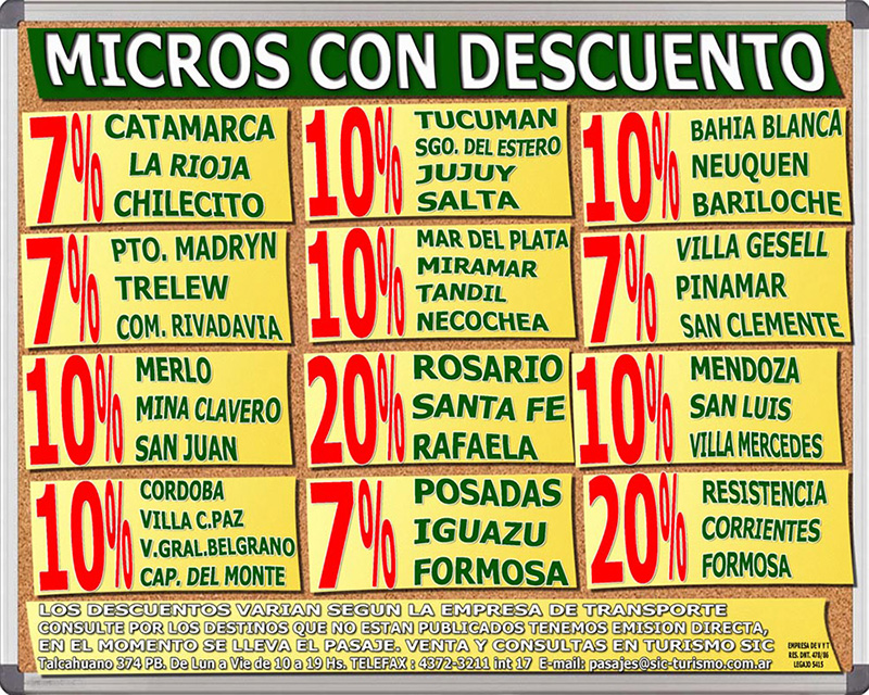 Estos descuentos que oscilan entre un 10 y un 50% son aplicables a teatros, días de campo, espectáculos, cursos, pasajes de micros, turismo, piletas, entre otros servicios.